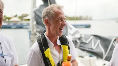Chaque skipper soutenait une cause. Pascal Coret, collaborateur de la Caisse des Dépôts, a choisi CDC Développement solidaire, l’association « maison ». Un soutien gratuit : notre skipper a payé sur ses deniers son engagement et tous ses frais, il a offert simplement une belle visibilité à notre association.