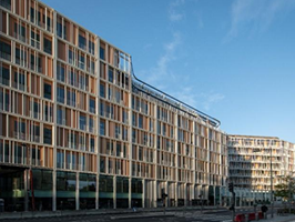 Le choix des matériaux a fait l’objet d’une attention particulière, notamment via une structure mixte bois (50 % de la structure) et béton bas carbone et métal (25 % XCarb). L’orientation, les terrasses et la façade assurent une luminosité naturelle à l’intérieur des locaux, ainsi qu’un confort thermique optimal. L’immeuble vise les meilleurs standards environnementaux.