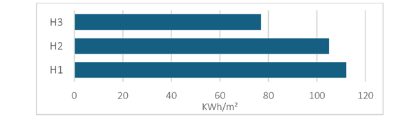 Figure 2. Besoins en chauffage par m² par grandes zones climatiques