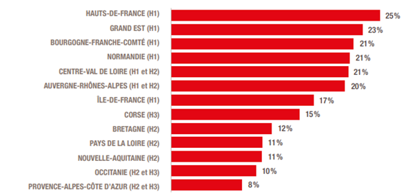 Figure 3. Part des logements énergivores dans le parc social, par région