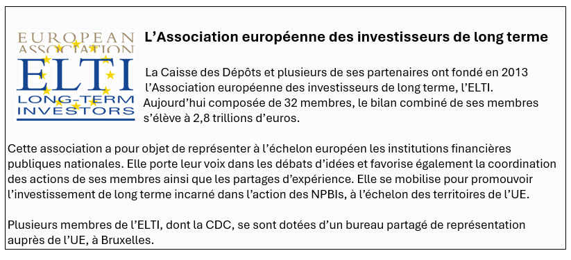 En amont du prochain cadre financier pluriannuel (2028-2034) qui pourrait contenir un « pilier compétitivité », la mise en œuvre d’InvestEU - dont la Caisse des Dépôts, comme plusieurs des membres de l’ELTI, est un partenaire de mise en œuvre labellisé de la Commission européenne - permet de soutenir la compétitivité et pourrait être davantage mobilisé dans le futur cadre budgétaire.