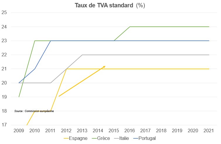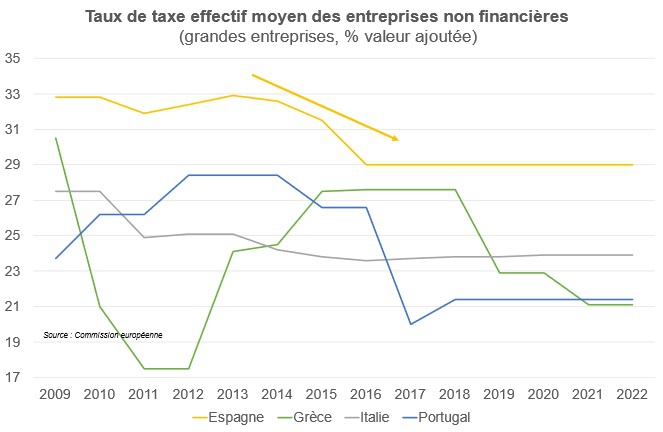 - et, dès le mode « crise » endigué, l’abaissement des impôts sur les entreprises a amélioré la compétitivité (note : le Portugal et l’Italie ont également réduit ces taux, la Grèce n’a pas pu vu l’étendue des besoins)