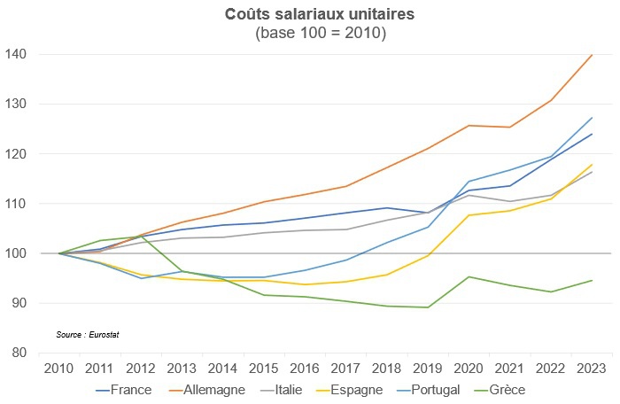 Tous les pays confrontés à la crise de la dette souveraine ont connu une progression moindre des coûts salariaux unitaires pendant et en sortie de crise