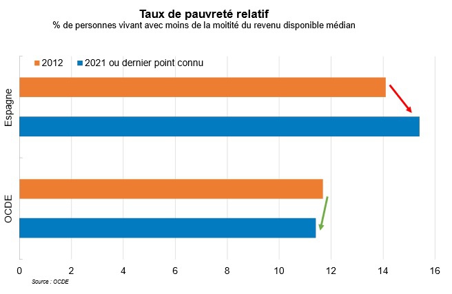 Concernant des indicateurs extra financiers, l’indice de développement humain, calculé par le Programme des Nations Unies pour le développement qui calcule, en prenant en compte l’espérance de vie, les niveaux d'éducation et de revenus, la qualité de vie, s’est tout de même amélioré entre 2010 et 2022 ; l’Espagne a perdu toutefois 7 places (elle a un score égal à la France en 2022, qui a reculé de 14 places depuis 2010 pour se situer au 28e rang des pays dans le monde, l’Allemagne gagnant 1 place, au rang 9).