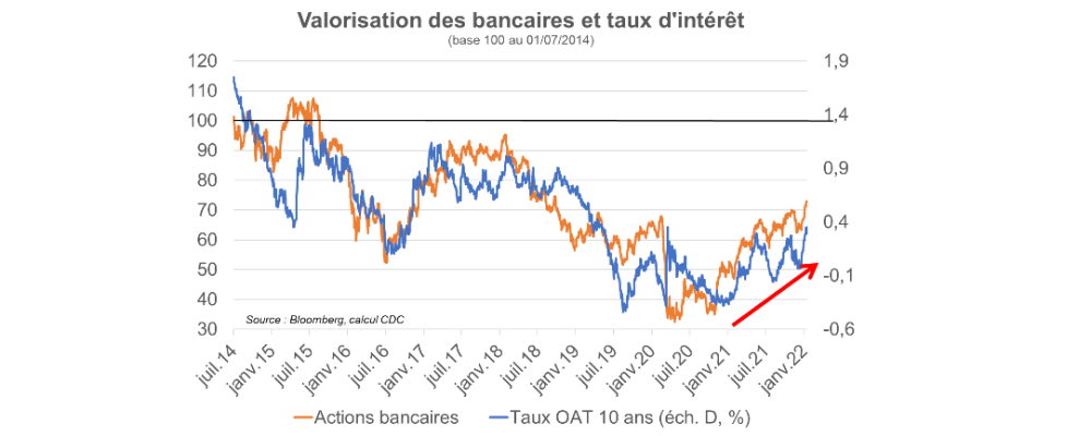 - Le modèle économique bancaire et de l’assurance car l’industrie financière est davantage rentable dans un environnement qui se traduirait par des taux d’intérêt plus élevés.