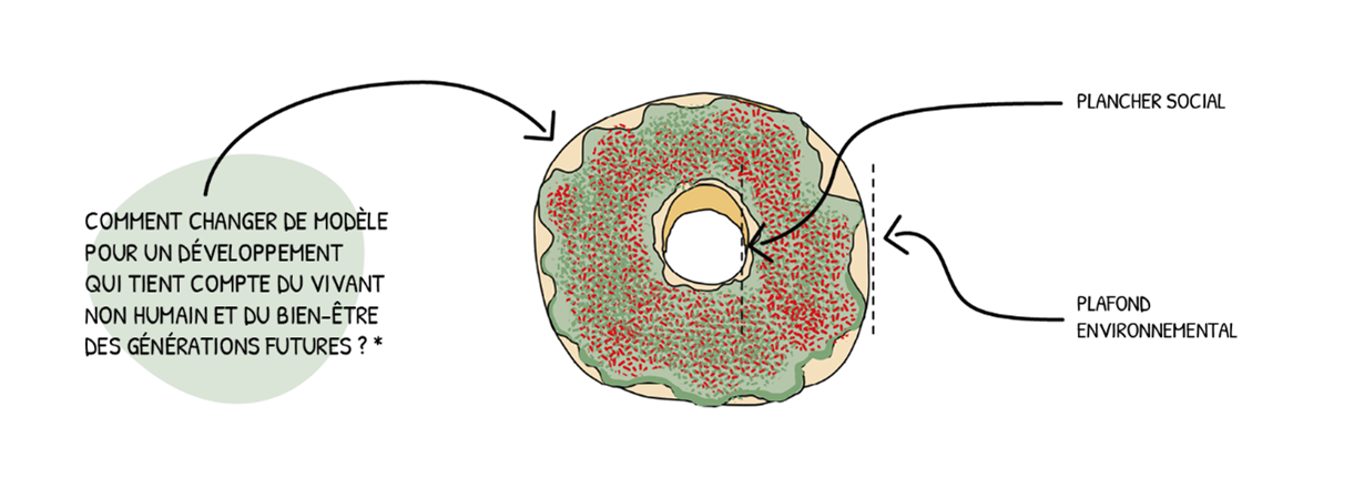 Illustration : Bien-être territorial et soutenabilité, ADULM (Stéphanie Demeyere) d’après la théorie du Donut développée par l’économiste britannique Kate Raworth