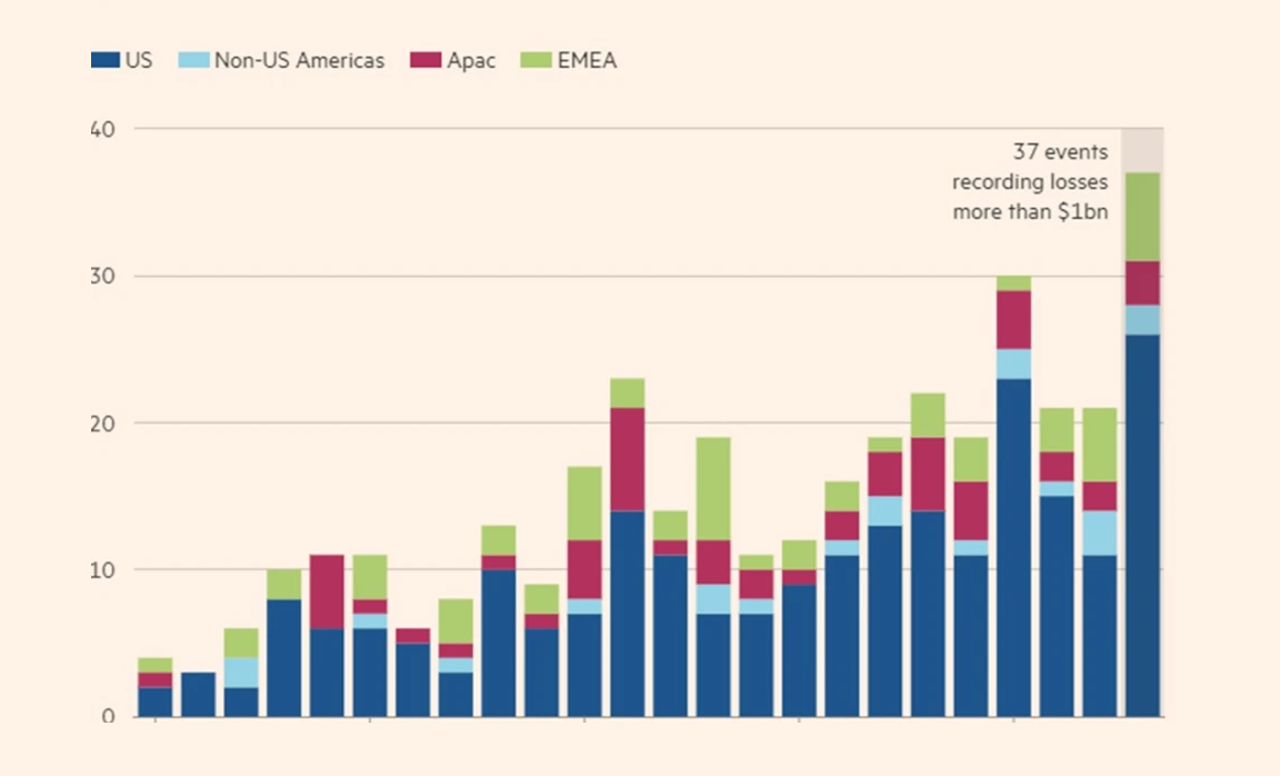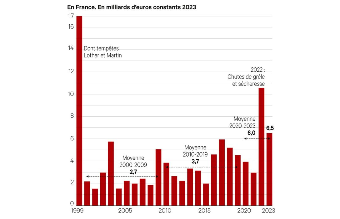 Figure 1 : Coût des sinistres climatiques pour les assureurs entre 1999 et 2023