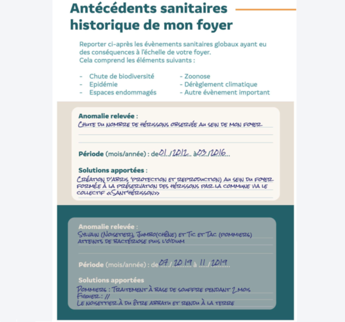 Un carnet de santé planétaire, qui vise à suivre l’état de santé de l’ensemble des habitants humains, animaux et végétaux d’un foyer.