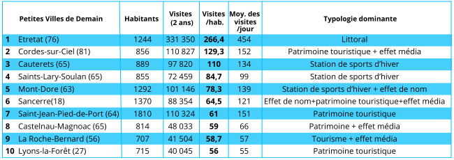 voir le TOP 30 p. 5 de l’enquête « L’attractivité des petites villes de France au prisme des 43 millions de consultations de leurs pages Wikipédia »)