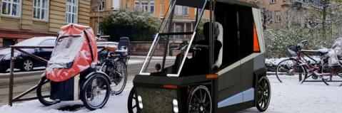 Le Karbike, un exemple de véhicule pesant 80 kg permettant de transporter deux personnes quelle que soit la météo.
