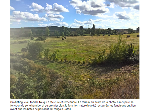 Par ailleurs, à l’occasion de la construction de la ligne à grande vitesse Tours-Bordeaux, LISEA, filiale de Vinci et porteuse du projet, s’est acquitté de la compensation environnementale conformément à la loi qui stipule qu’en échange de la destruction de zones humides et de différentes espèces protégées et lorsque que le projet n’a pas d’alternative, l’entreprise doit financer 1. L’acquisition 2. La restauration et 3. La gestion de manière pérenne. Avec la LGV, l’État a fixé ce délai à 60 ans. Le CEN a donc acquis le foncier et assuré la maitrise d’ouvrage et le suivi des entreprises sur le chantier couvrant les rives de la rivière le Né. Le syndicat de rivière, lui, a apporté son aide sur l’aspect technique en prenant à sa charge les travaux hydrologiques.