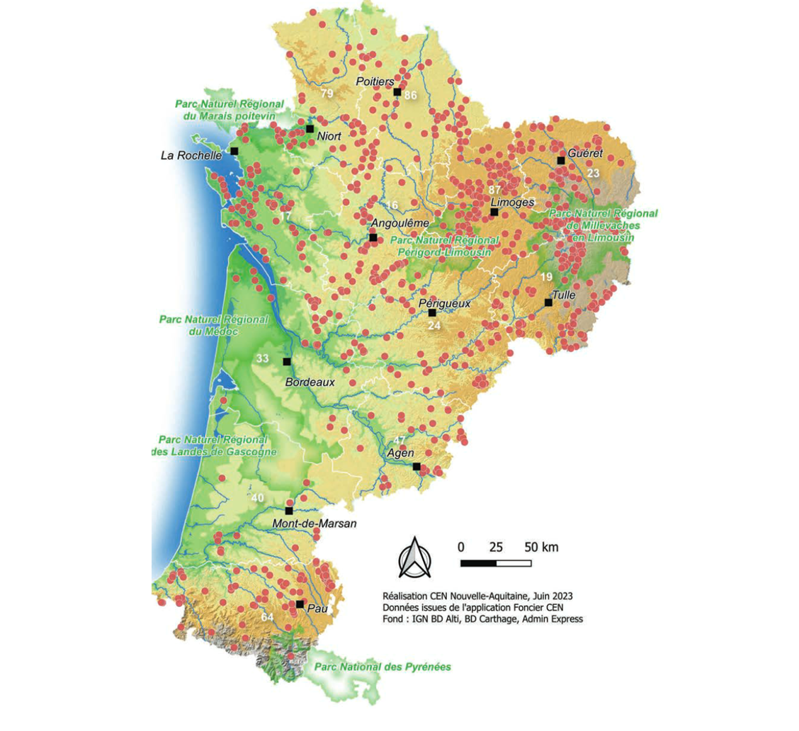 Le CEN est une association que l’on peut considérer comme l’équivalent du Conservatoire du littoral (voir Les conflits autour de l'eau en agriculture (2/4) Le Conservatoire du Littoral - Le Marais de Brouage), n’était que ses interventions portent non sur le littoral mais sur les terres intérieures. Créé en Poitou-Charentes notamment sous l’impulsion du président Raffarin, l’idée a été reprise par la Région Nouvelle-Aquitaine avec la volonté de faire du CEN un ensemble d’associations en charge du foncier. Chaque Région dispose de son CEN et les missions leur sont communes : la préservation des milieux naturels par la maitrise du foncier. Une antenne existe par département (sauf dans les Landes où elle est rattachée au Pays-Basque).