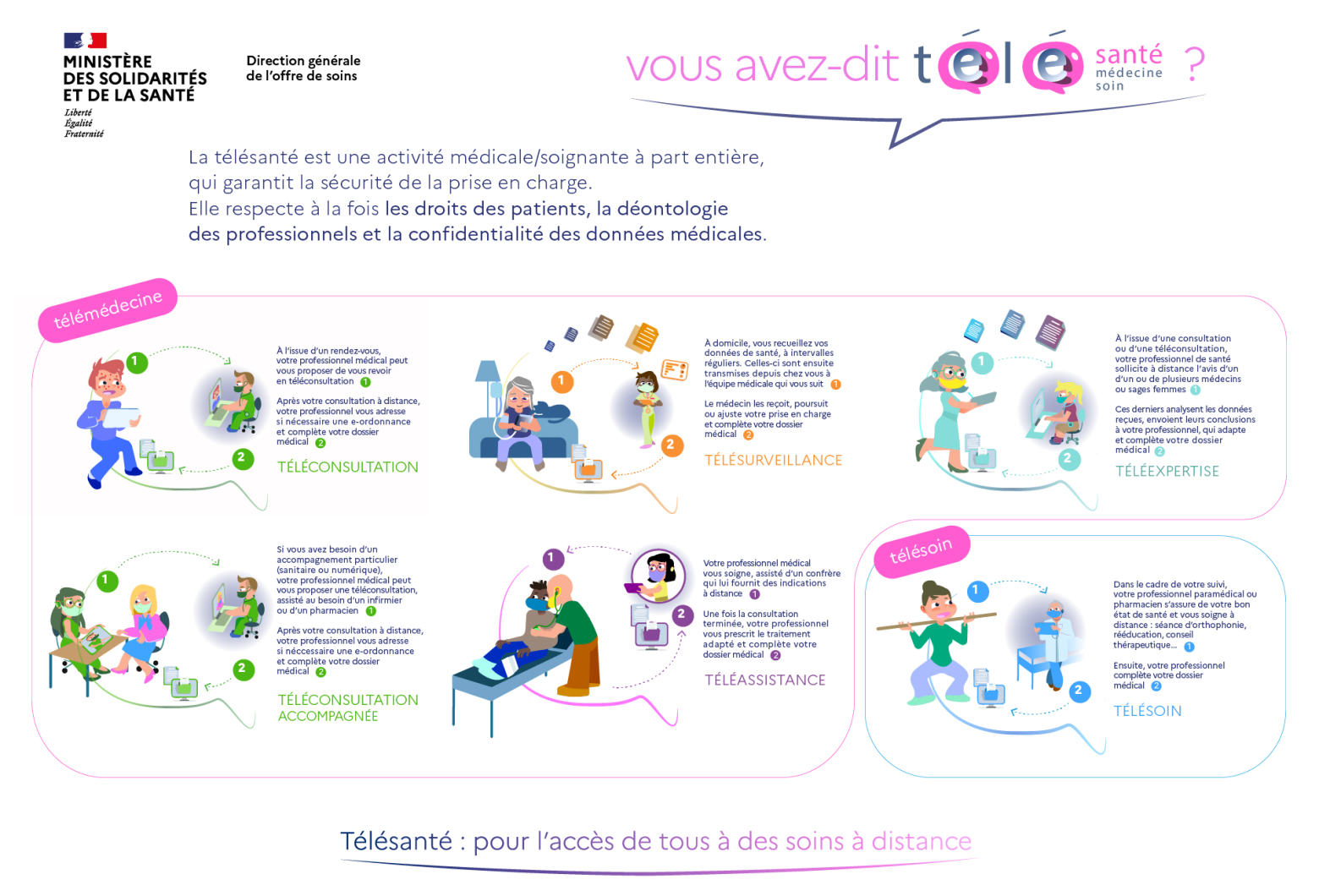 La télésanté englobe plusieurs prestations, dont les deux principales :