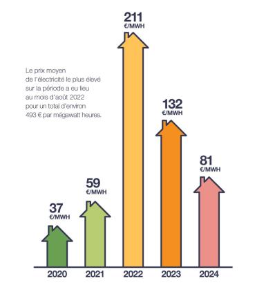 Evolution du prix de l'électricité en France entre 2020 et 2024
